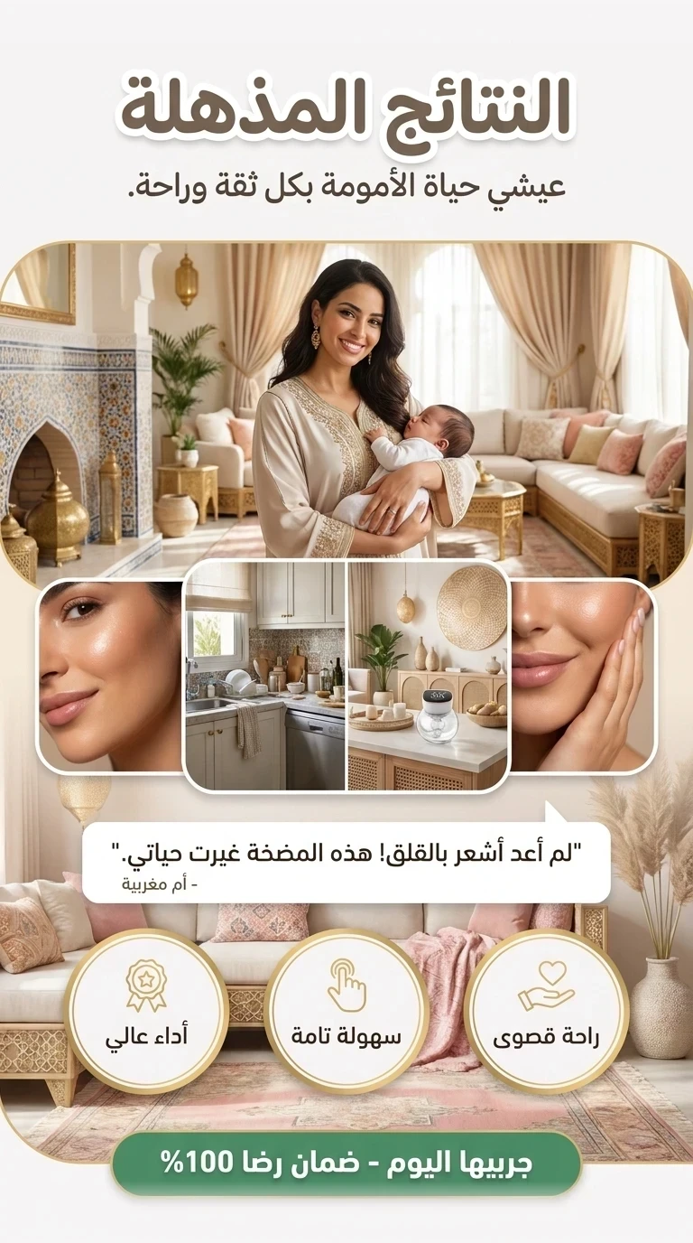 إذا كنتِ تبحثين عن أداء قوي بدون إزعاج فهذه المضخة تجمع بين الضخ الهادئ والتصميم المدمج وسهولة التنظيف في جهاز واحد. اختيار مثالي للأم العصرية التي تريد حلاً مريحاً وفعالاً في أي وقت وأي مكان.