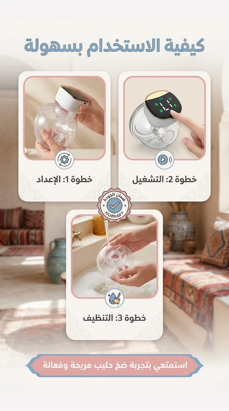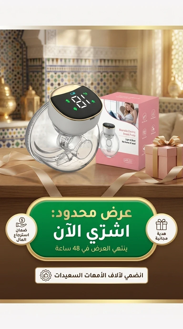 مضخة حليب كهربائية ذكية بشاشة رقمية واضحة تمنحك تحكما سهلا وتجربة ضخ مريحة وهادئة في البيت أو خارج البيت. خفيفة وسهلة التنظيف ومصنوعة من مواد آمنة خالية من BPA مع توصيل سريع خلال 24 إلى 48 ساعة والدفع عند الاستلام وضمان استرجاع لمدة 14 يوم.